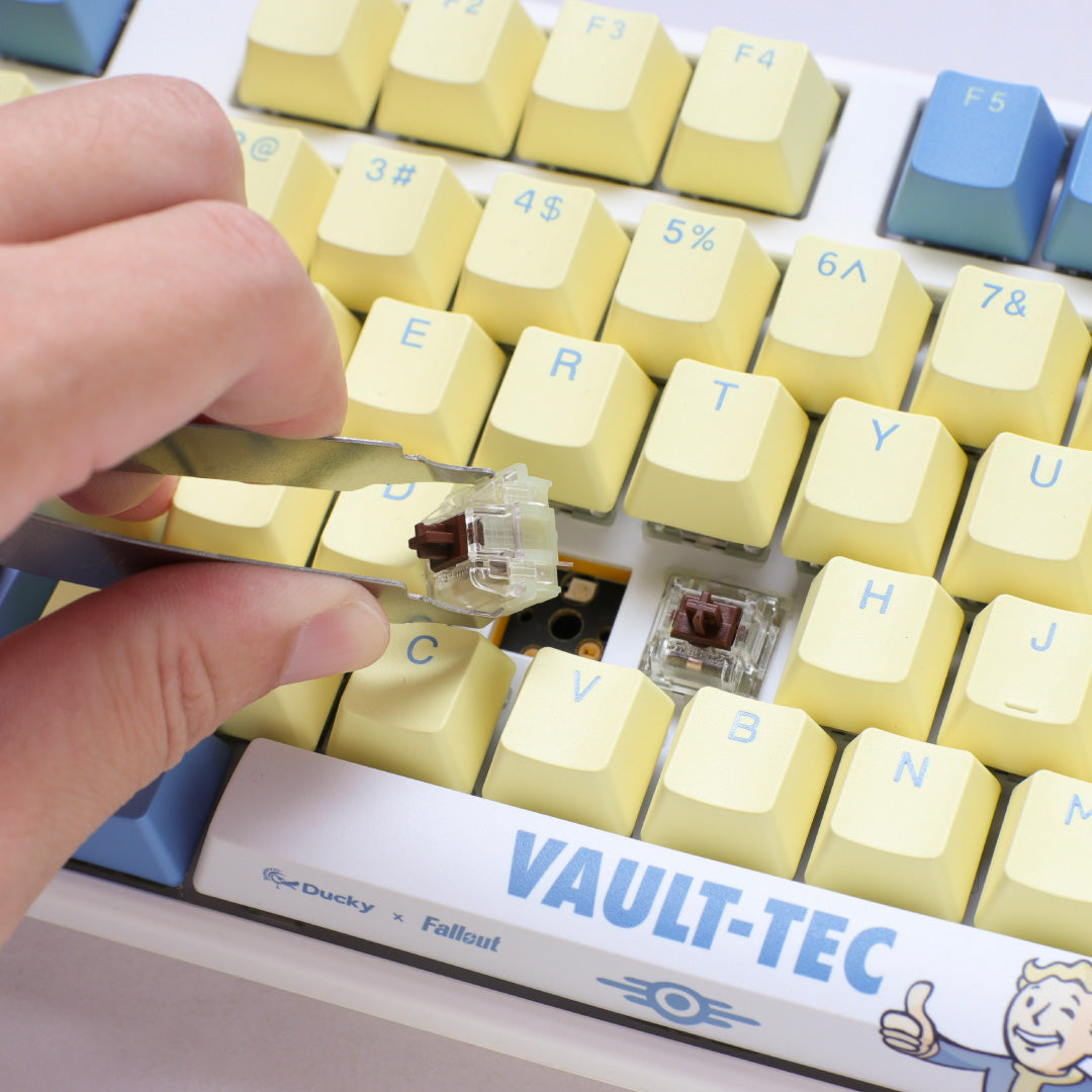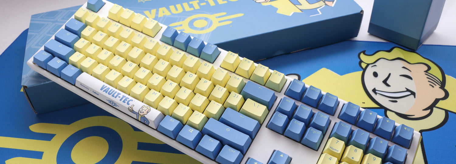 The Ducky x Fallout® Vault-Tec™ Edition One 3 RGB keyboard features Vault-Tec’s iconic blue and yellow design with Vault Boy, bringing the Fallout universe to life. With vibrant RGB lighting and Cherry MX switches, it offers both style and performance. As a limited-edition collectible, it’s the perfect blend of gaming gear and memorabilia.