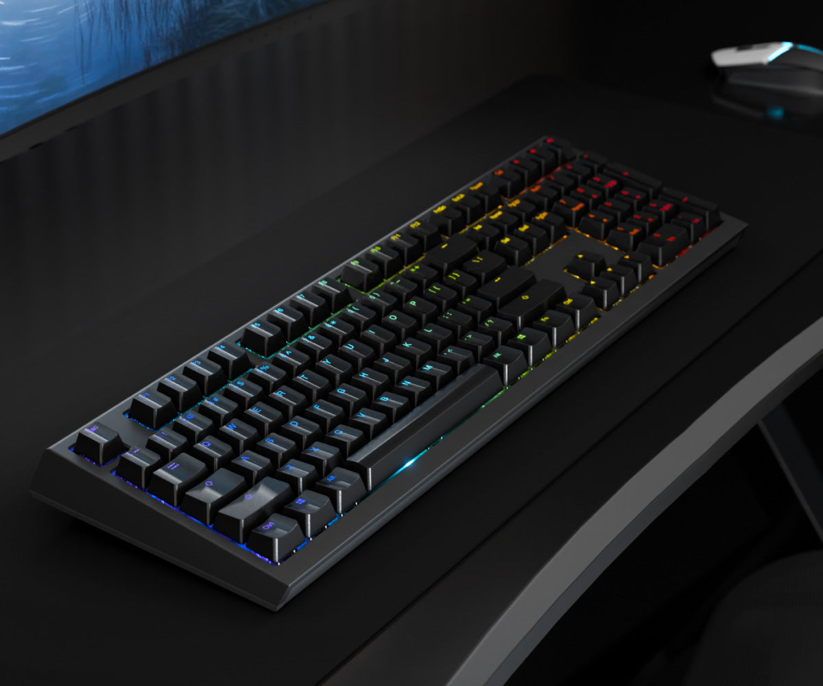 high-purity PBT double shot keycaps elevate the standard by utilizing a remarkable 85% PBT composition. This meticulous attention to detail ensures an unparalleled typing experience, boasting superior material texture, beautiful RGB lighting and unparalleled resistance to shine.