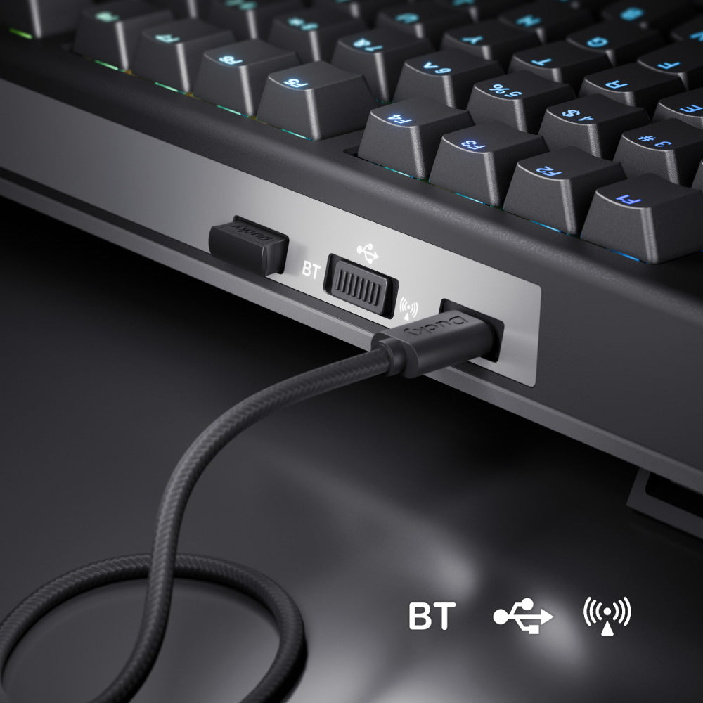 Connect seamlessly in the way that suits you best - whether it's through a wired USB connection, 2.4 GHz RF, or BT with multi-device support for up to four devices.