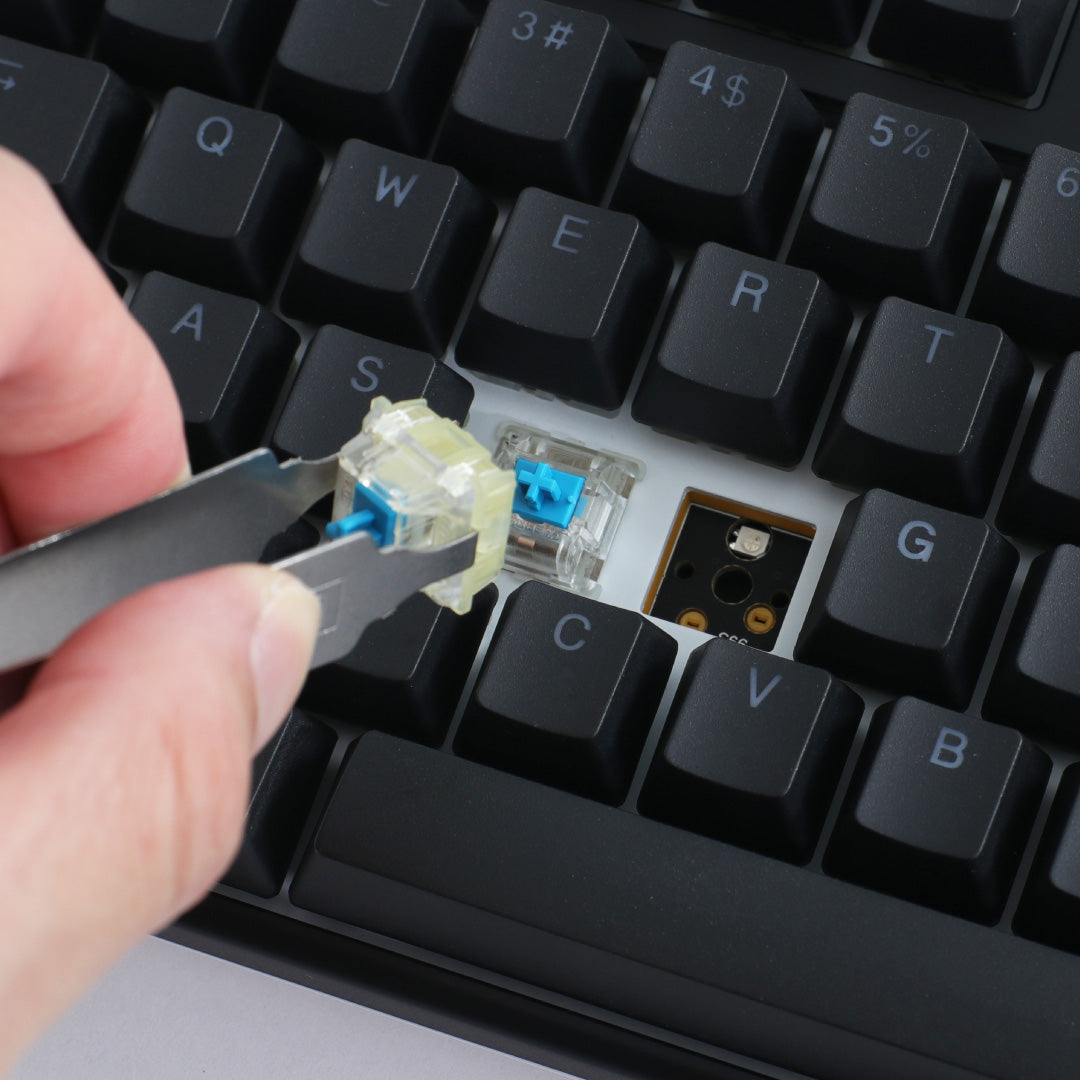 Ducky One 3 系列機械鍵盤採用凱華熱插拔底座,相容於市面上99%的三腳、五腳軸體,不需要電烙鐵以及吸錫器等工具,便可透過 One 3 附贈的拔軸器,輕鬆實現不同區域、不同軸體的極致手感,大幅降低了鍵盤換軸的困難度,使其成為體驗各種機械軸體最有效率的選擇。
