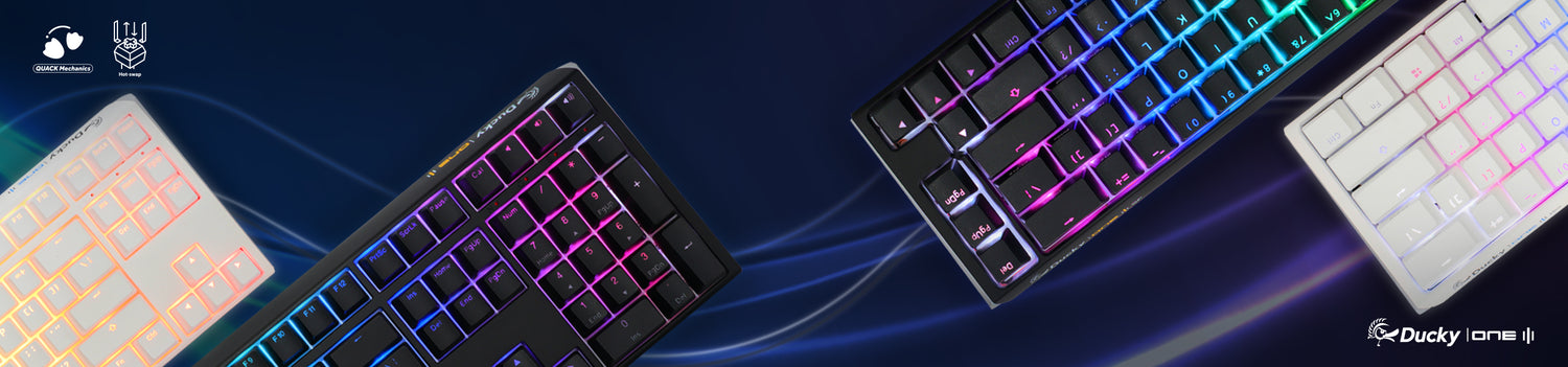 Ducky One 3系列機械鍵盤採用薄邊框撞色設計,提供五腳熱插拔版本,讓玩家DIY體驗各種軸體的奧妙之處,Ducky獨家研發的「QUACK Mechanics 鴨感」設計,期望使用者從雙手接觸鍵盤的那一刻開始,就可以感受到Ducky所帶來無與倫比的「壓感」體驗!