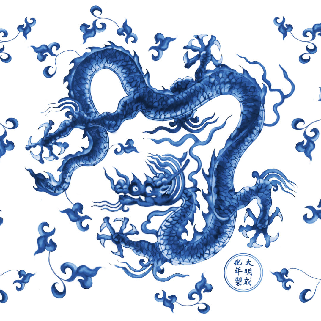 明代永樂時期首次出現了帶有花紋的龍紋瓷器。藍白瓷器有著各種形式,其中龍的形象生動有力,穿梭於交織的花紋之間,這是其獨特的點之一,一些器型和裝飾深受當時的伊斯蘭文化影響,也同時象徵著東西方之間的文化交流。